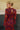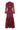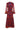 Vestido confeccionado en gasa estampada en tonos azules y rojizos. Tiene cuello perkins y mangas con hombreras terminadas en cono. La falda es recta con corte encima de las rodillas y un volante con algo de frunce que aporta vuelo y movimiento.