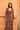 Vestido midi-largo confeccionado en gasa estampada en tonos granates y beige.