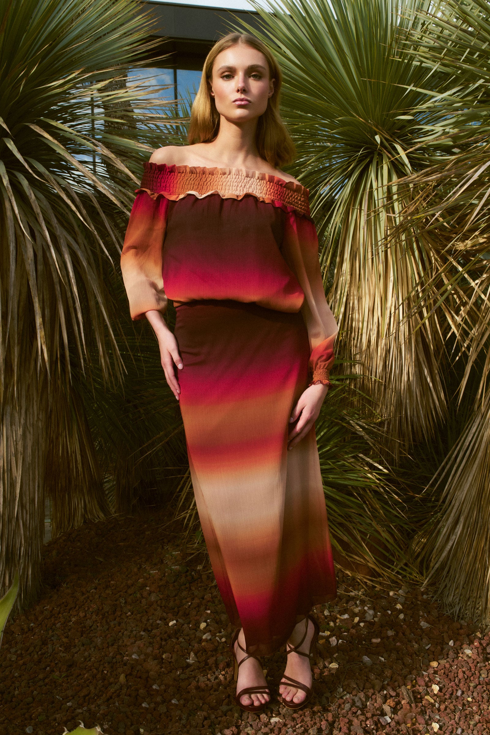 Falda confeccionado en gasa estampada en tonos